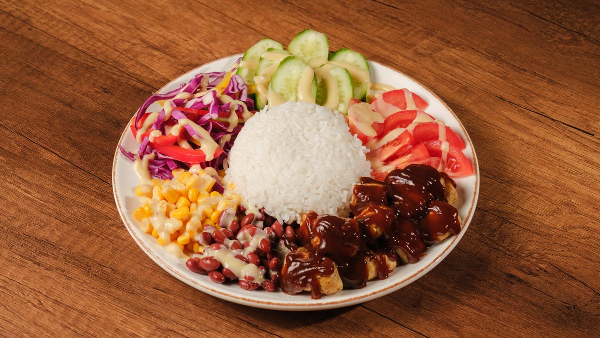 Tost çörəy, toyuq, file, düyü, iceberg, qırmızı kələm, xiyar, qarğıdalı, lobya, çerri, pomidor, karri sous, BBQ,