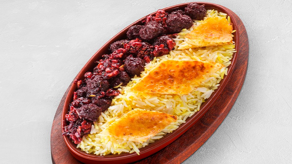 Köftə (dana əti, quzu quyruğu), qoz, nar sousu, soğan, düyü plov, qazmaq.