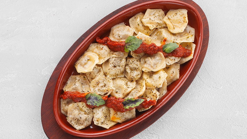 Sadə xəmir, ağ pendir, göyərti, çəltik sousu.