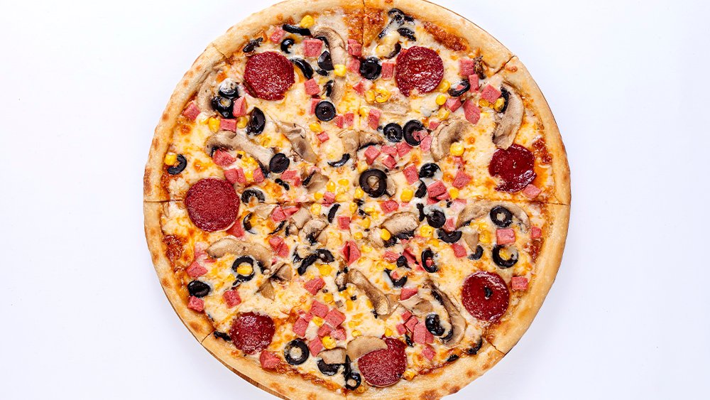 Dana əti, quzu quyruğu, pizza xəmiri, jalapeno bibər, mozzarella pendiri, kartof fri, pomidor, pizza sousu, pizza qaymaq sousu, ketçup, mayonez.
