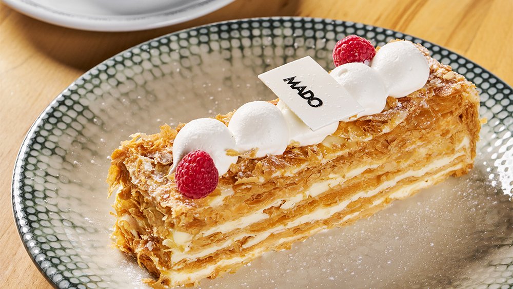 Qat-qat xəmir, fıstıq, süd, qaymaq, şokolad.
