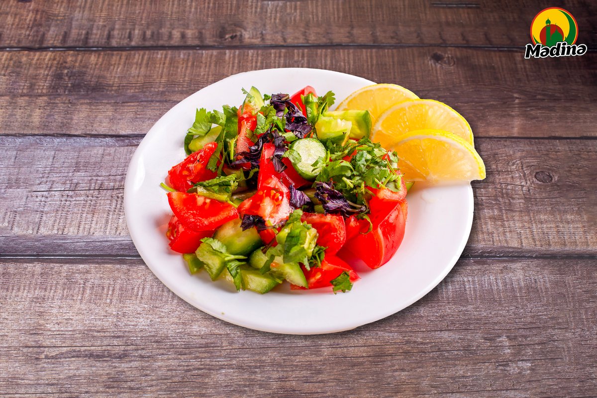 Mal əti qiyməsi, pomidor, bibər, cəfəri, limon