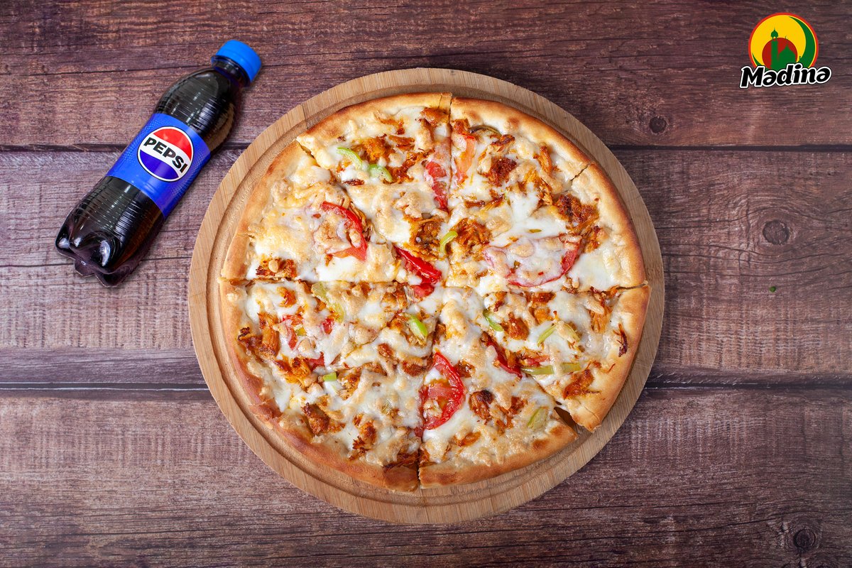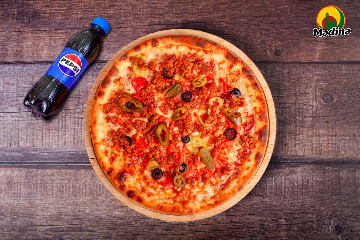 Pizza meksikano və pide qıyma və lahmacun və pepsi