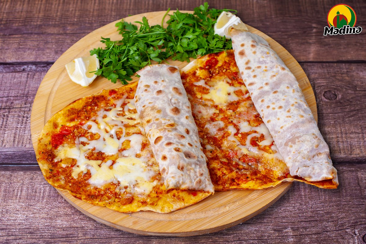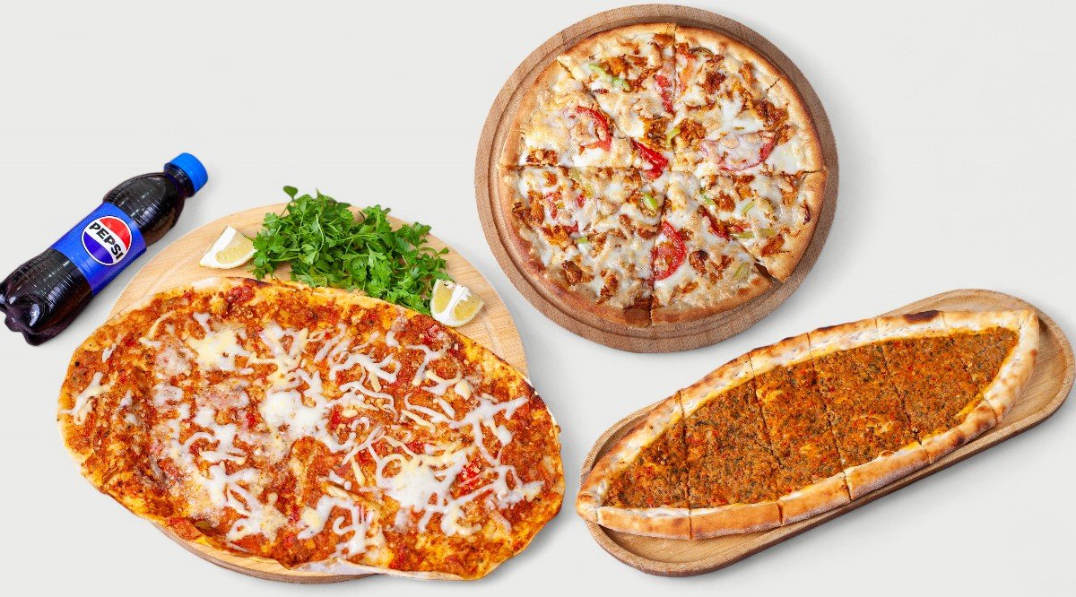 Pizza toyuq və pide pendirli və lahmacun və pepsi