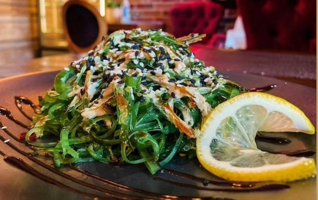 düyü,nore,krem pendir,xiyar,krevetka,krab,tobiko,küncüt,özel sous