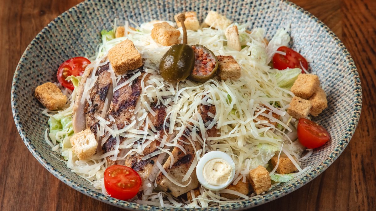 Sezar sous, aysberq, toyuq filesi,suxarı, parmezan, bildirçin yumurtası
