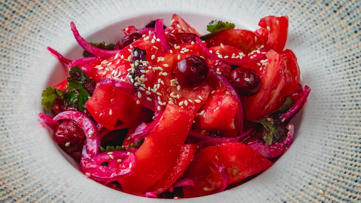Albalı, pomidor, bağ göyərtiləri, zoğal əzməsi, küncüt