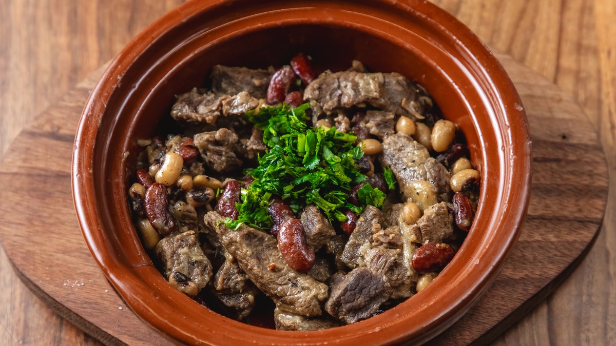 Əriştə, quzu əti, qaragöz lobya