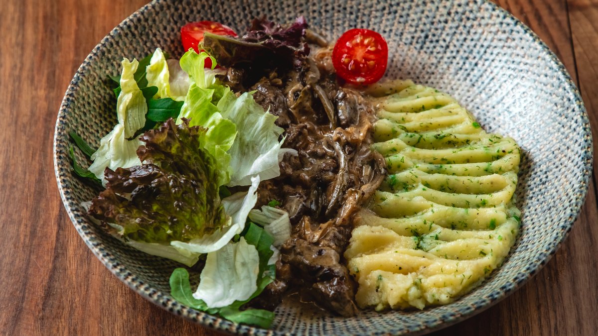 Göbələk, qaymaq, süd, truffle yağı