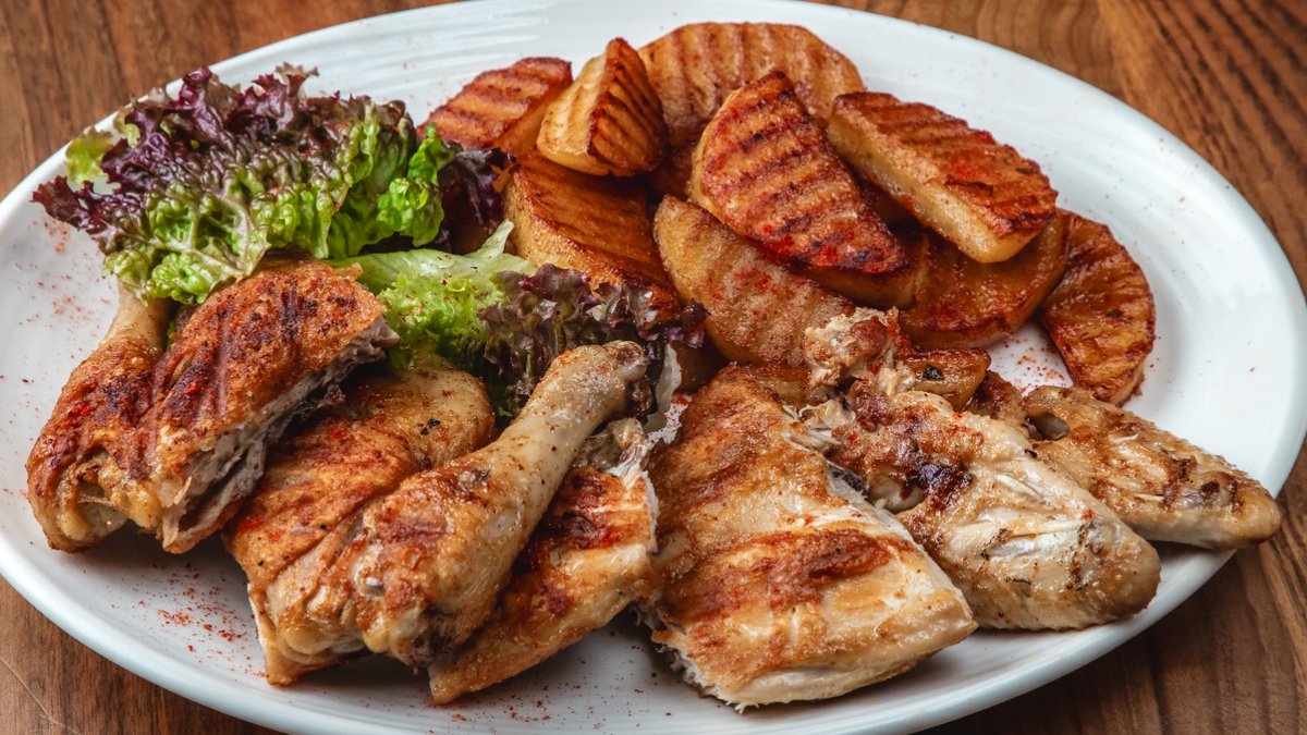 Toyuq filesi, pomidor, kartof