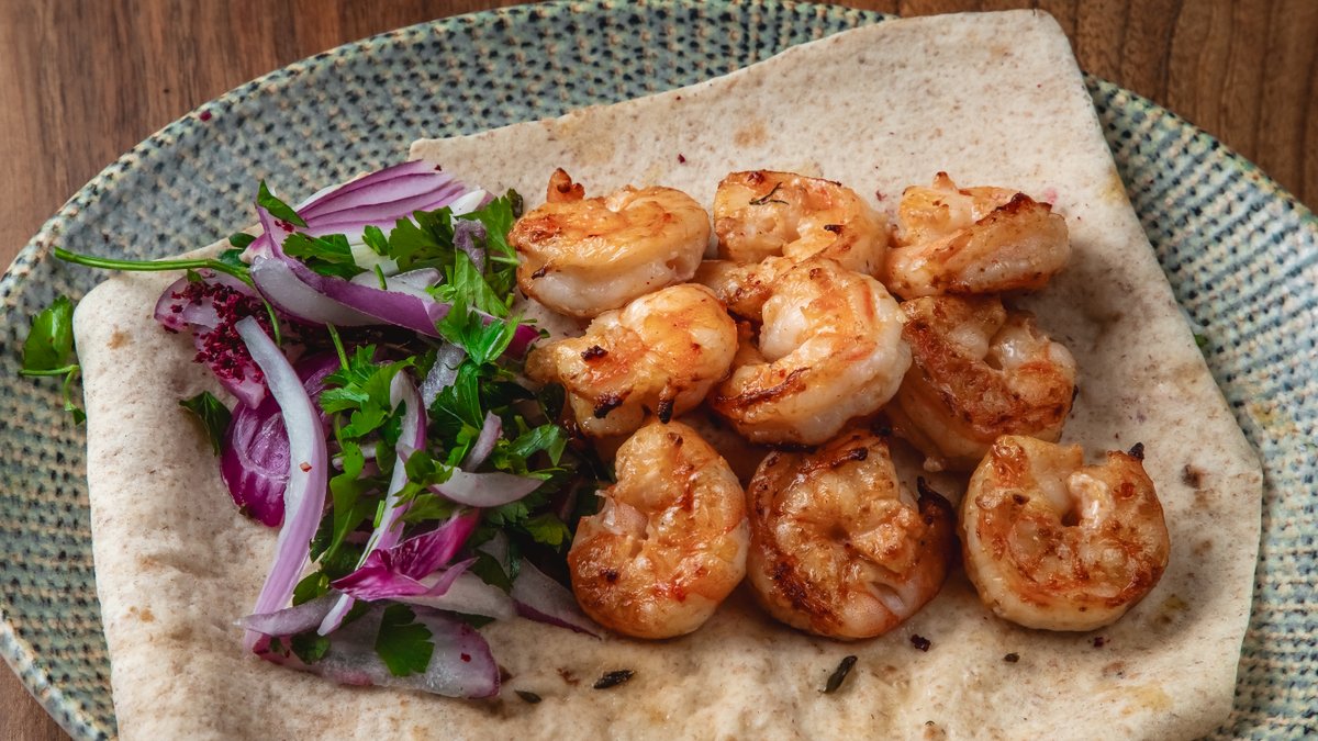 Okean krvetkası, narşərab, limon, qırımız soğan, bağ göyərtiləri, sumax, lavaş