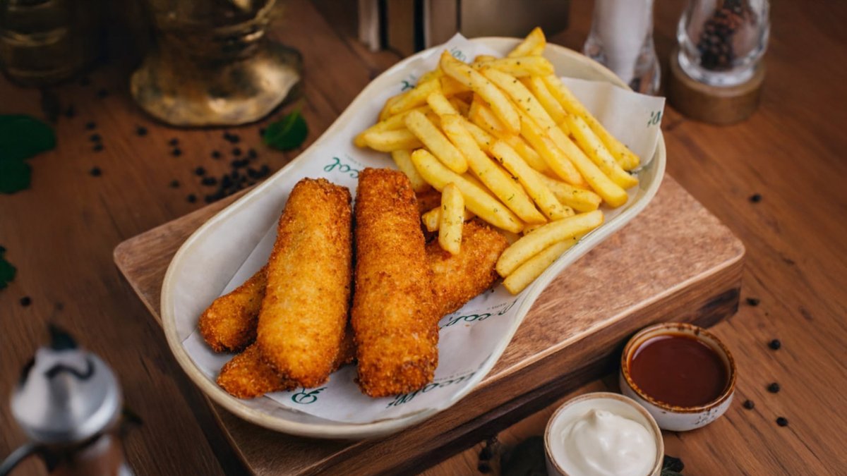 Toyuq nuggetsləri , kartof fri , ketçup , mayonez