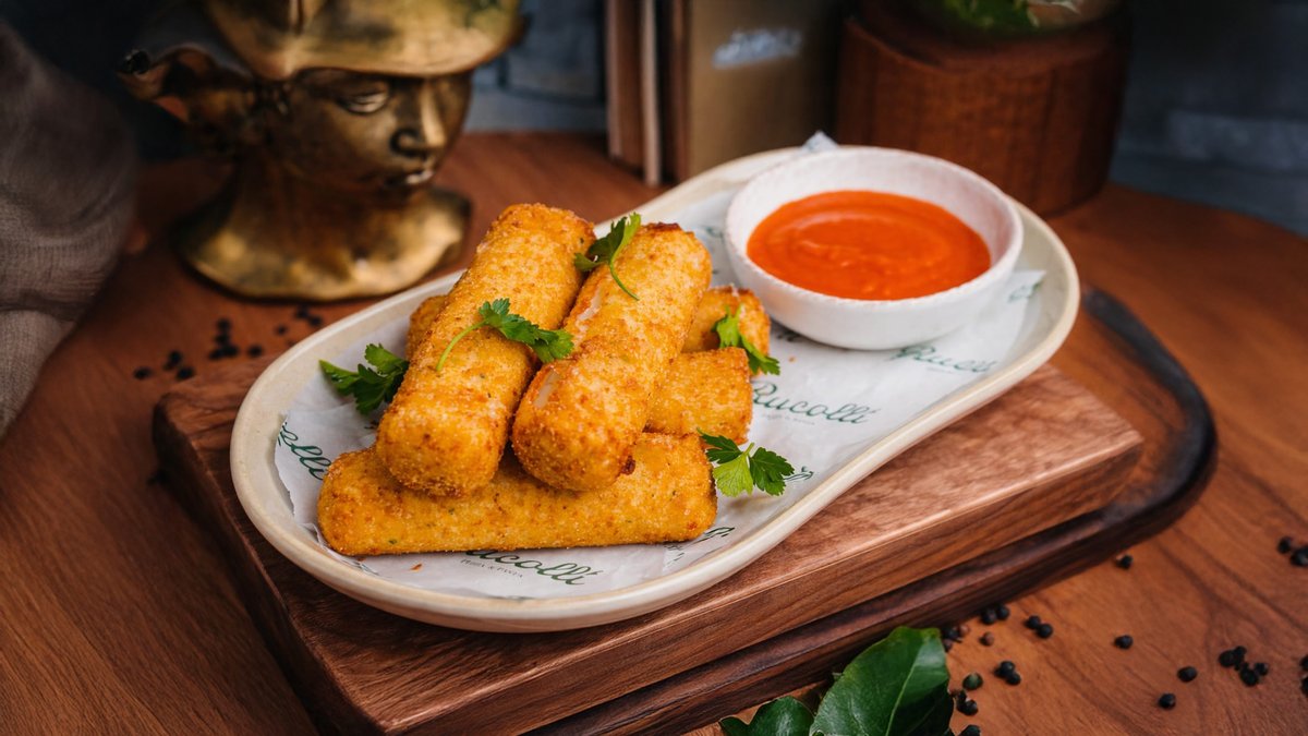 Mozarella çubuqları , acılı - şirin sous , kartof fri