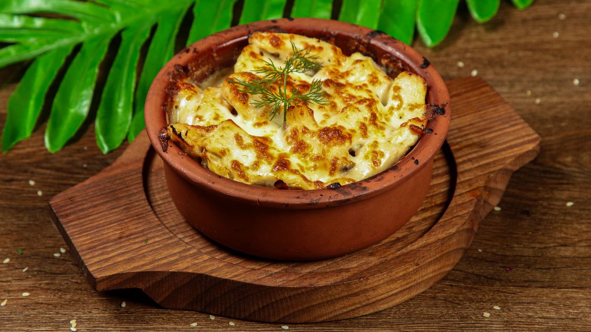 Toyuq filesi, göbələk, qaymaq, holland pendiri, ev sayağı kartof