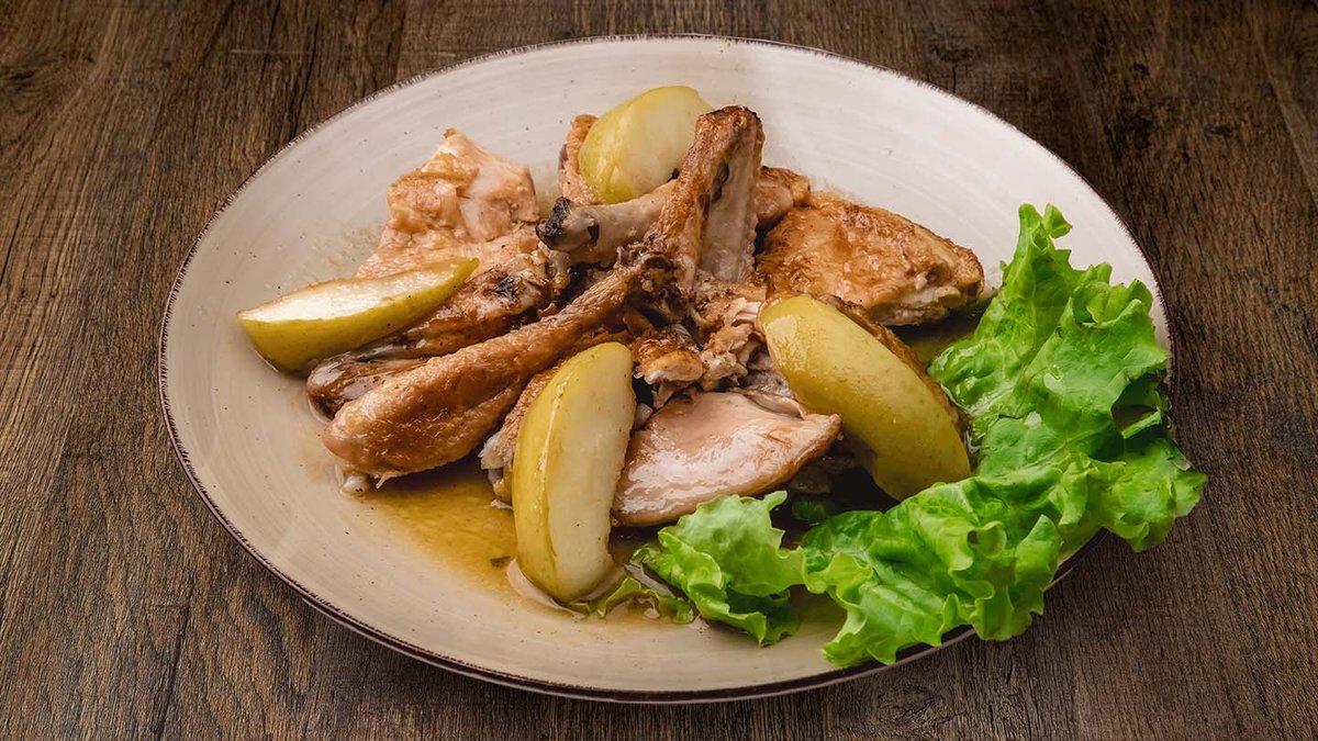 Qaynadılmış toyuq filesi, gavalı qurusu, qoz ləpəsi