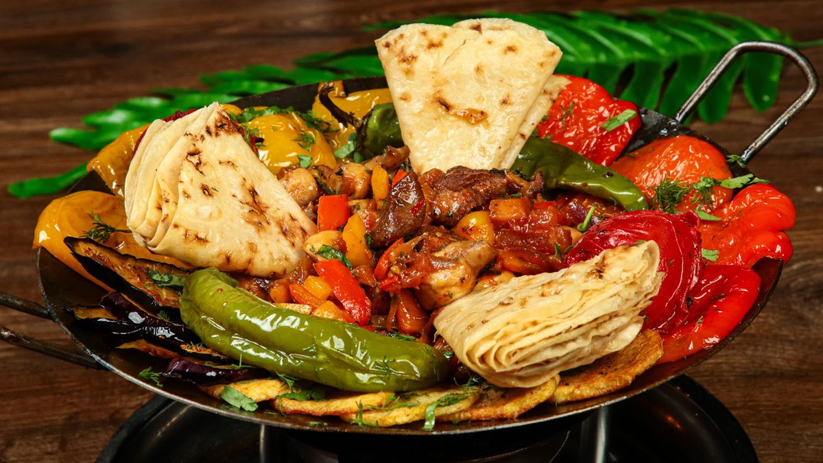 Qarışıq tərəvəzlərlə sacda dana can əti