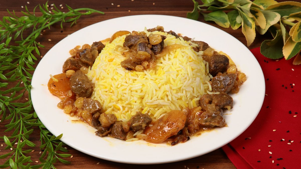 Quzu əti, uzun düyü, lavaş, şabalıd, sarı kişmiş, albuxara