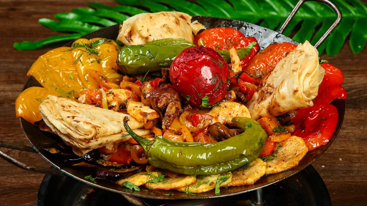 Qarışıq tərəvəzlərlə sacda kənd çolpası