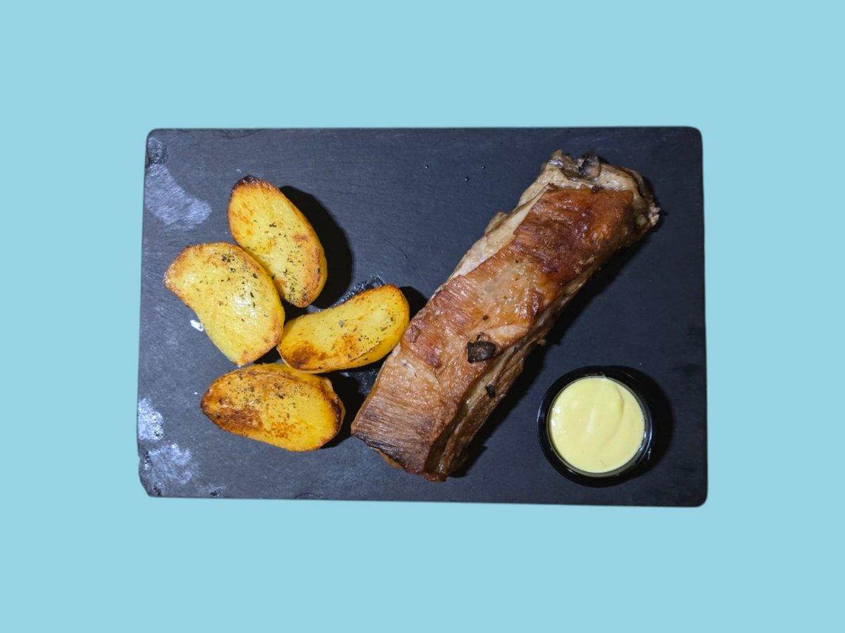 Свински ребра запечени, печен картоф с билки, сос айоли 0,400 г