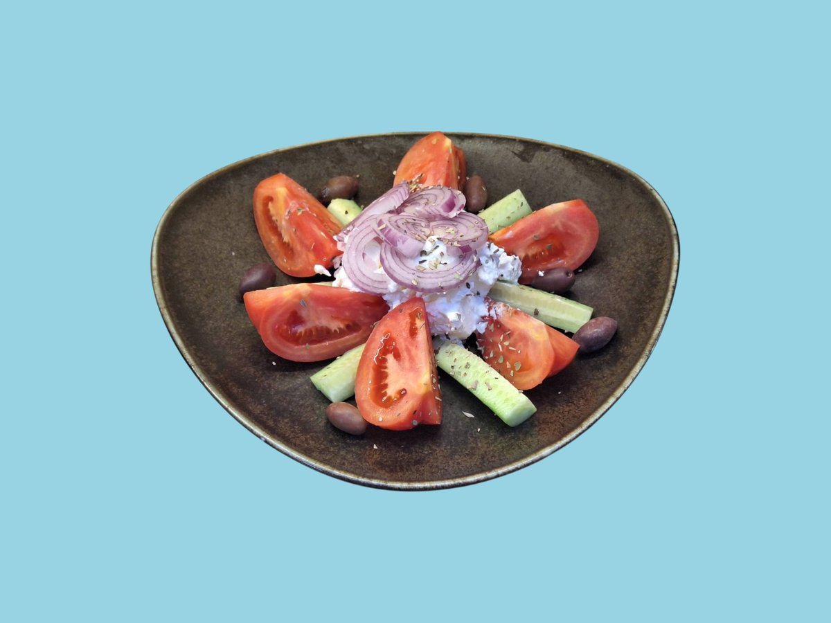 домати краставици, маслини, лук и мариновано сирене 0,350 г