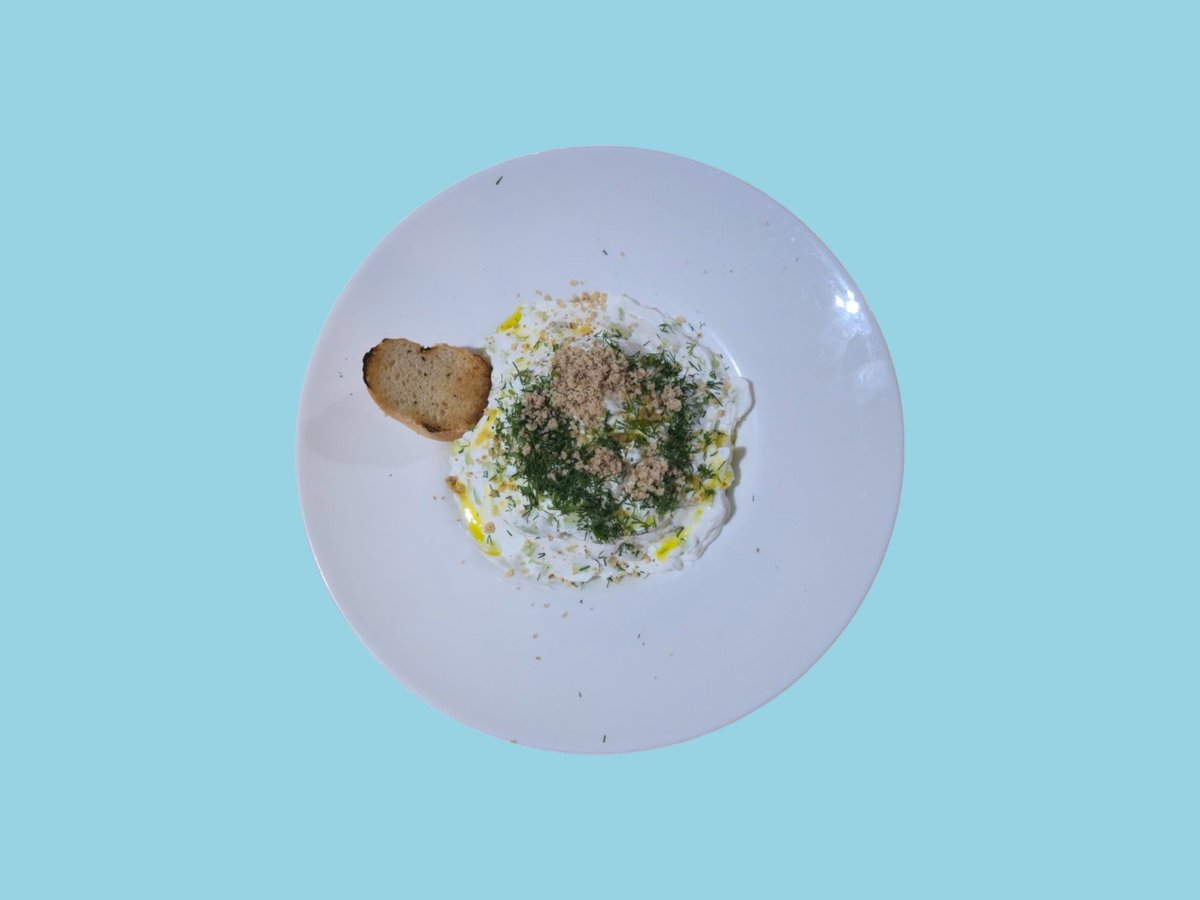 с брускета, цедено мляко, прясна краставица, орехи, копър 0,350 г