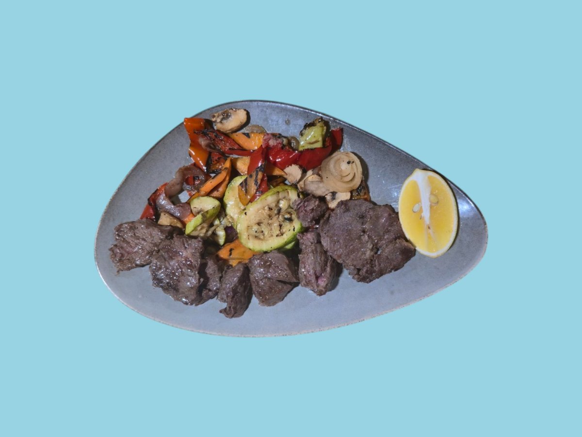 Телешки бон филенца, с гриловани зеленчуци, розмарин и чесън