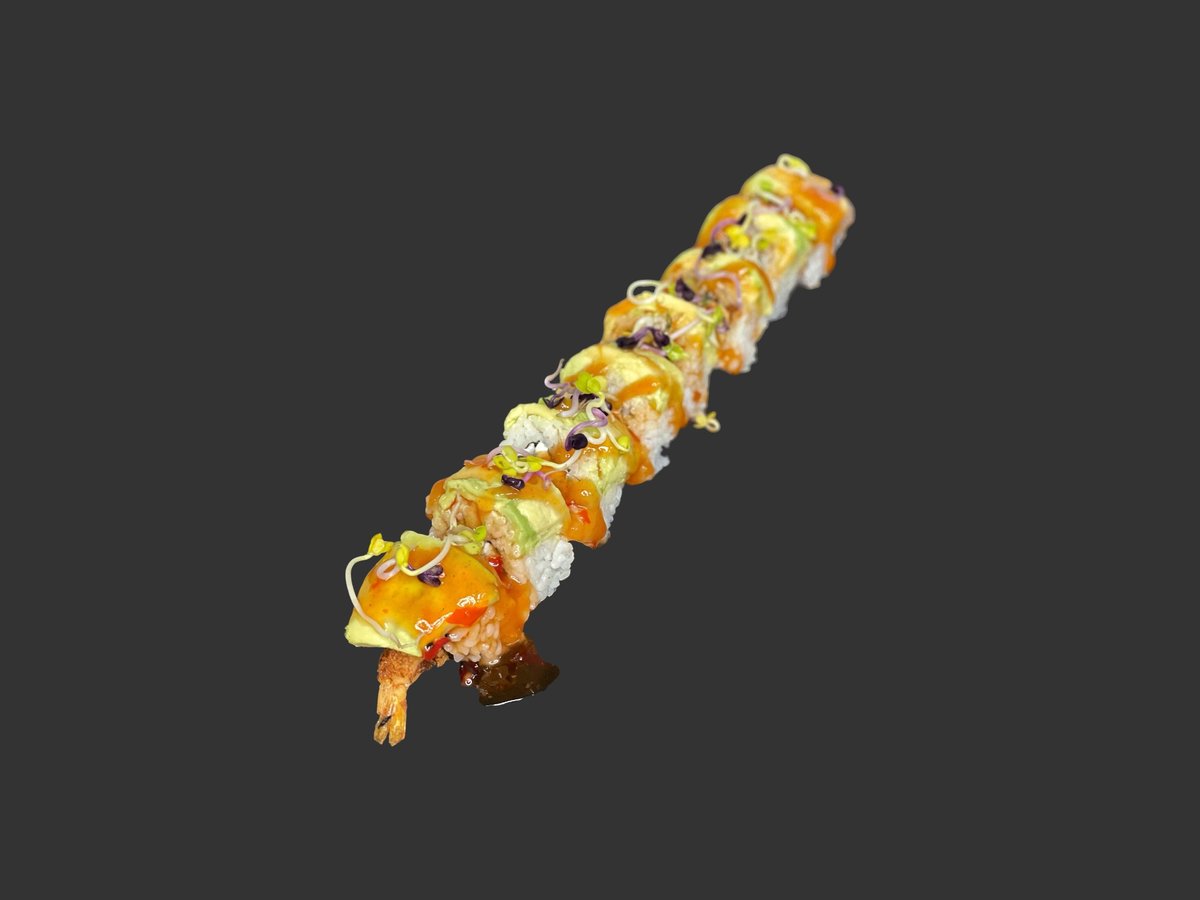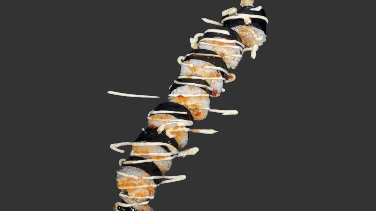 Нори, ориз, хрупкава скарида, мус от сурими, краставица, японска майонеза, сладко чили 8броя