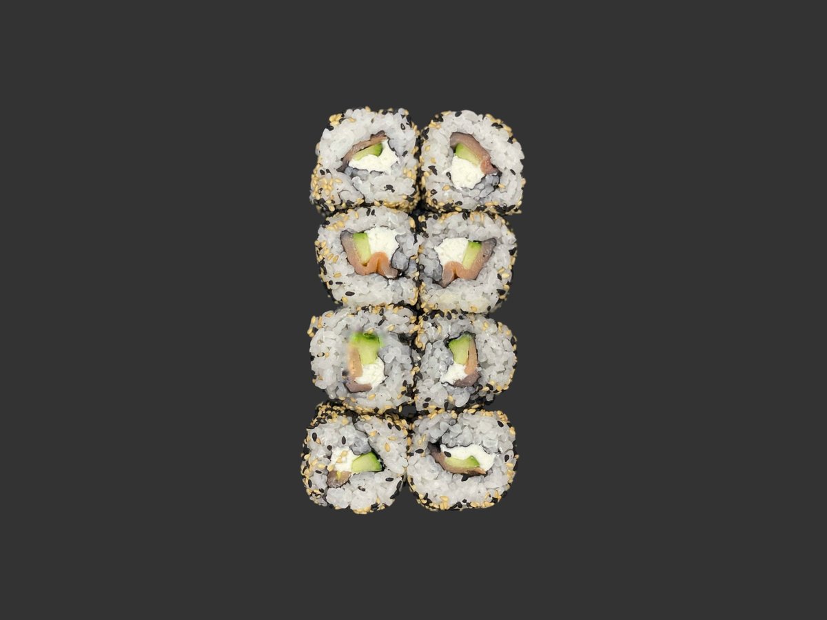 Нори, ориз, краставичка, пушена сьомга, Филафелфия, сусам 8броя