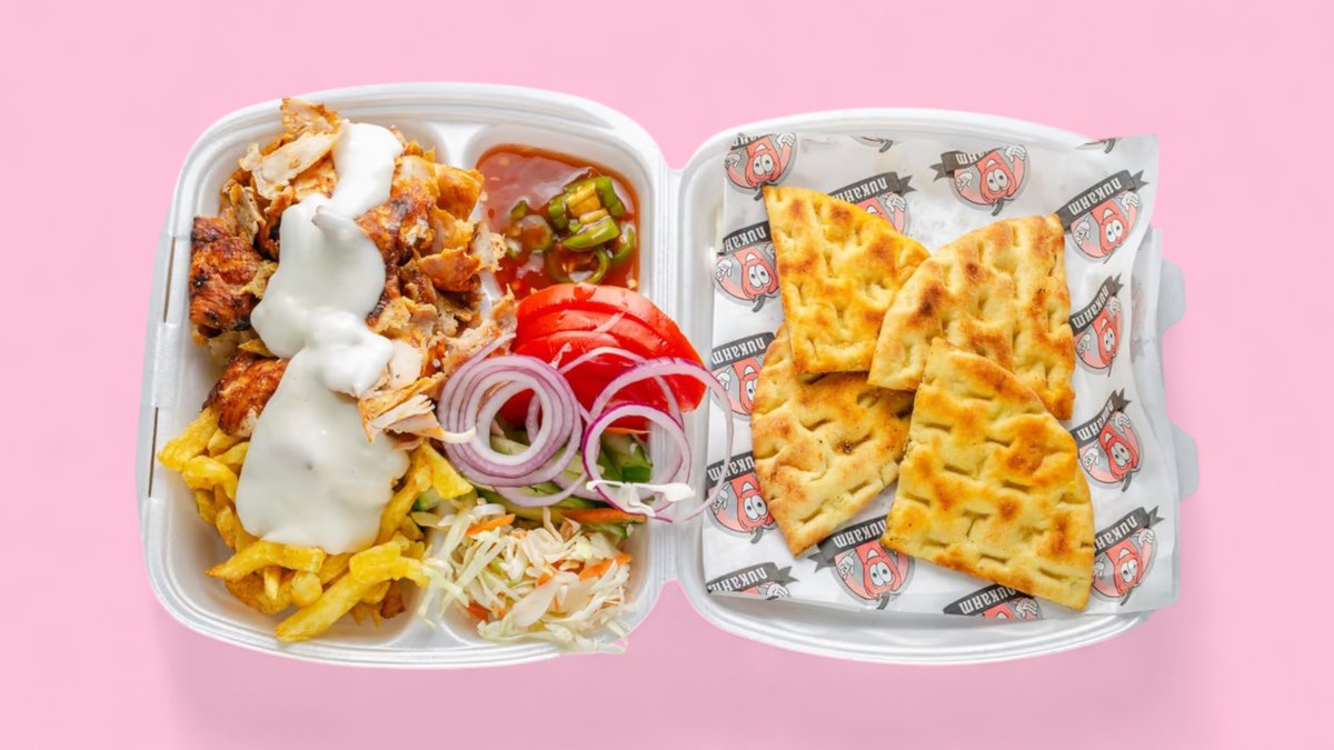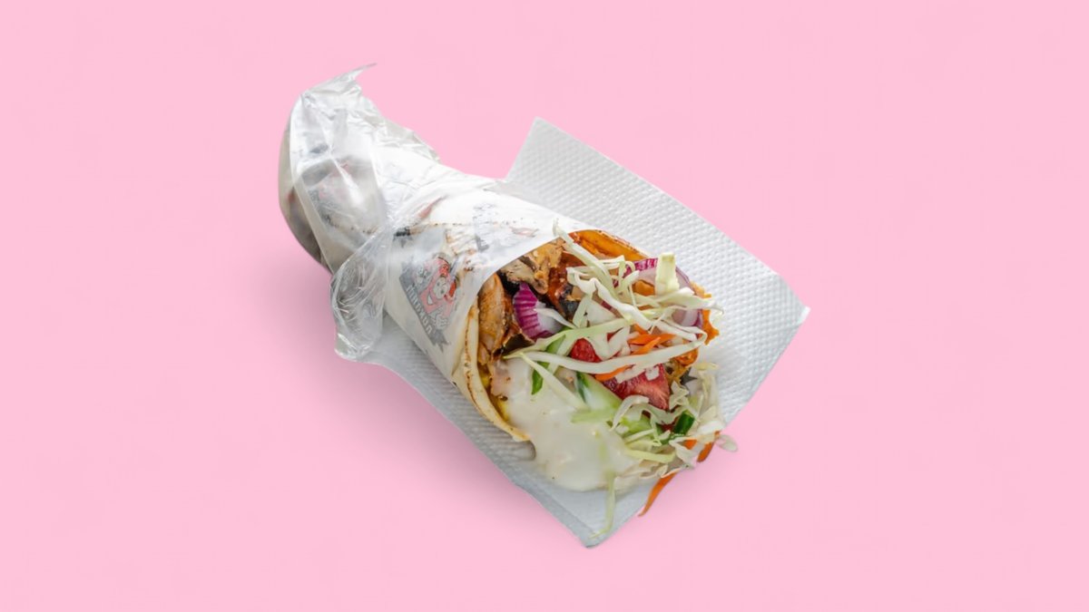 пилешко месо картофи, зеле, сос, може да си добавите и царевична питка към дюнер меню 600г