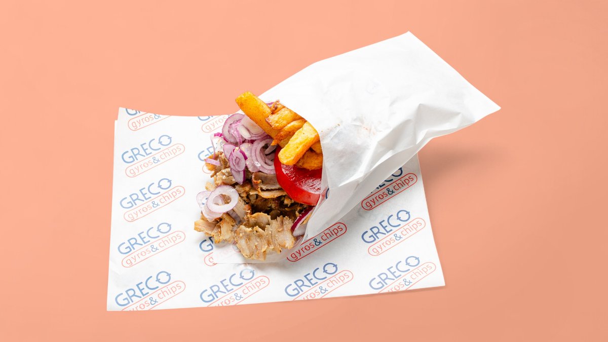 питка, 1 бр. салата (по избор), домати, лук, свинско месо, картофки