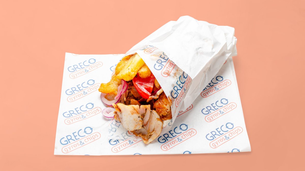 питка, 1 бр. салата (по избор), домати, лук, пилешко месо картофки
