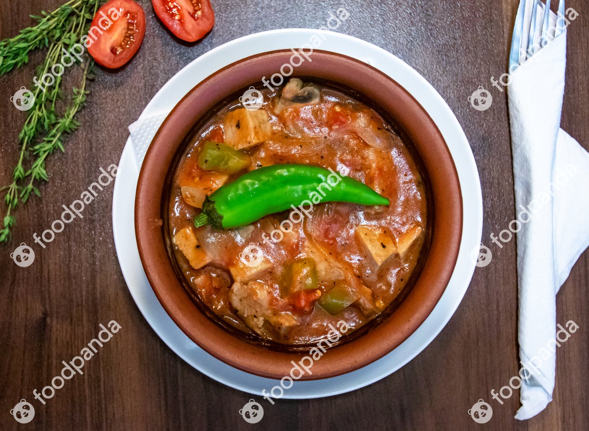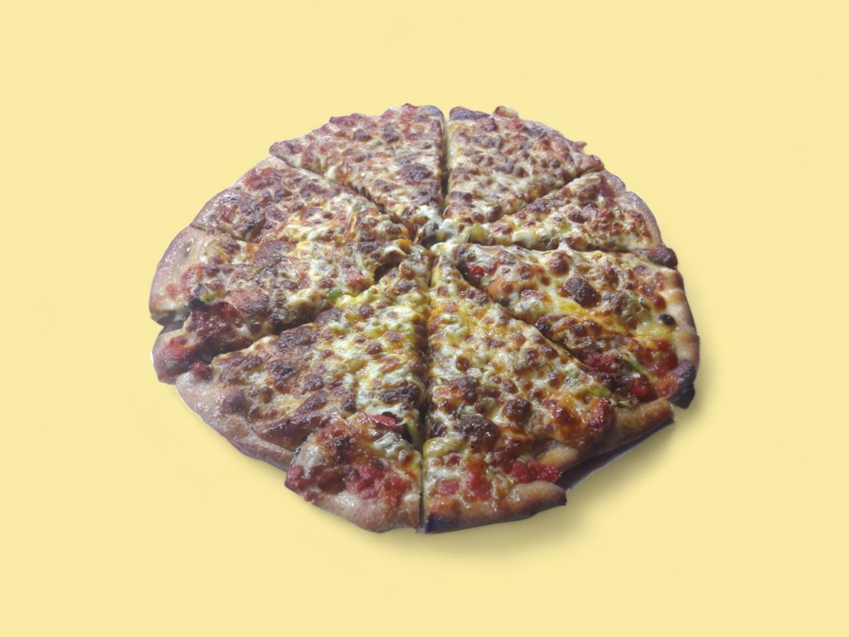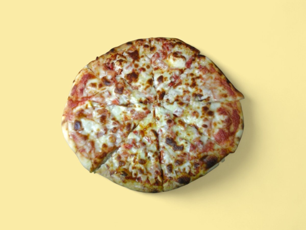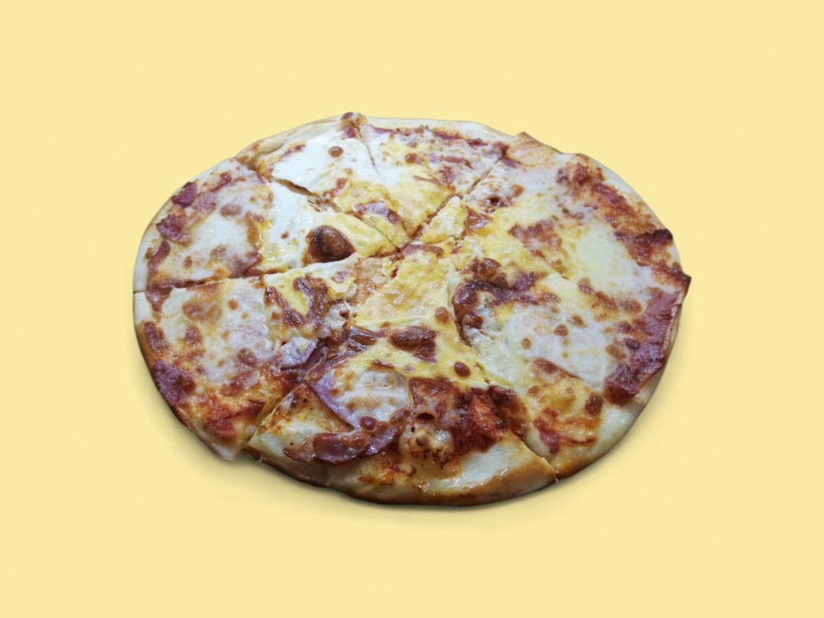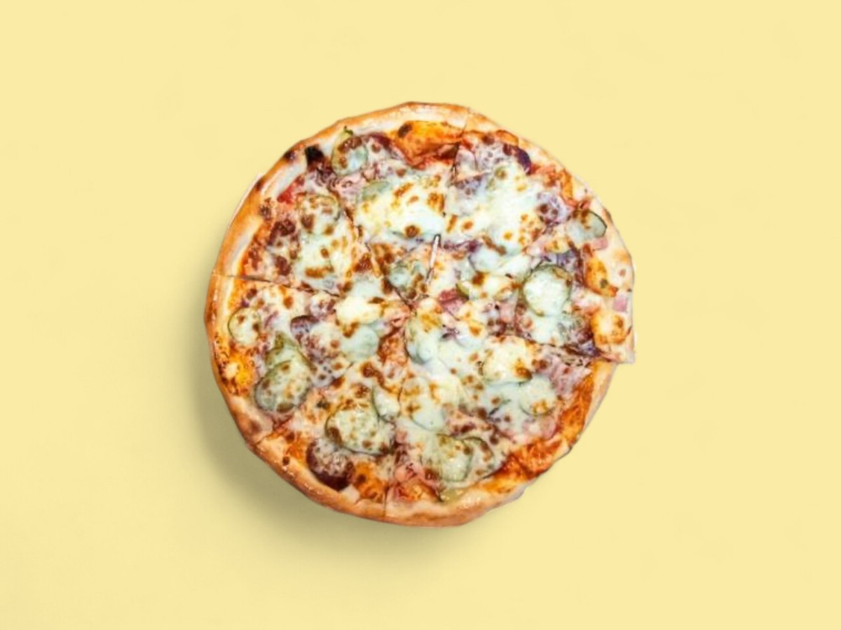 доматена паста, свинска шунка, бекон, суджук, гъби, кисели краставички, чушка, домат, кашкавал, яйце