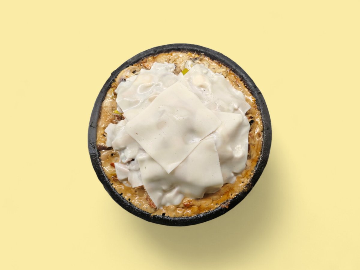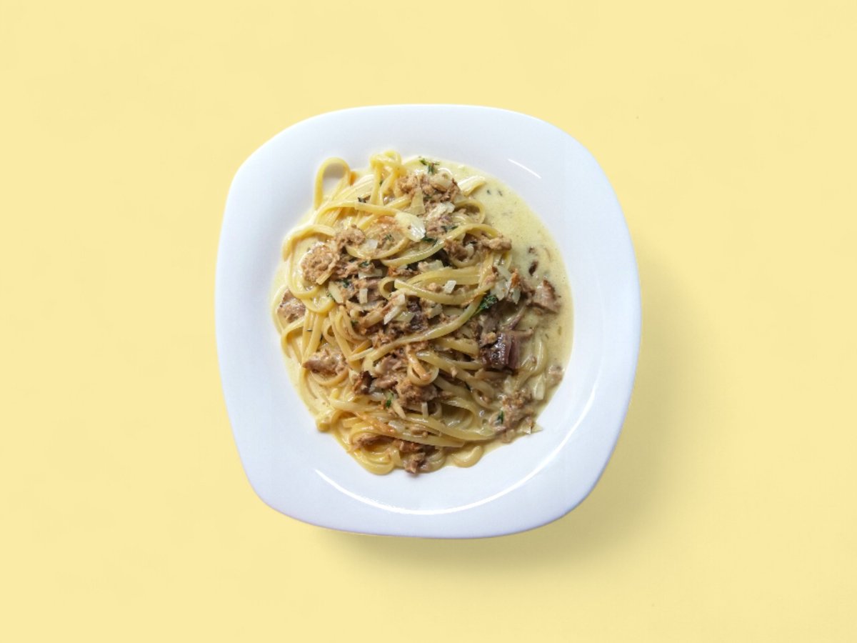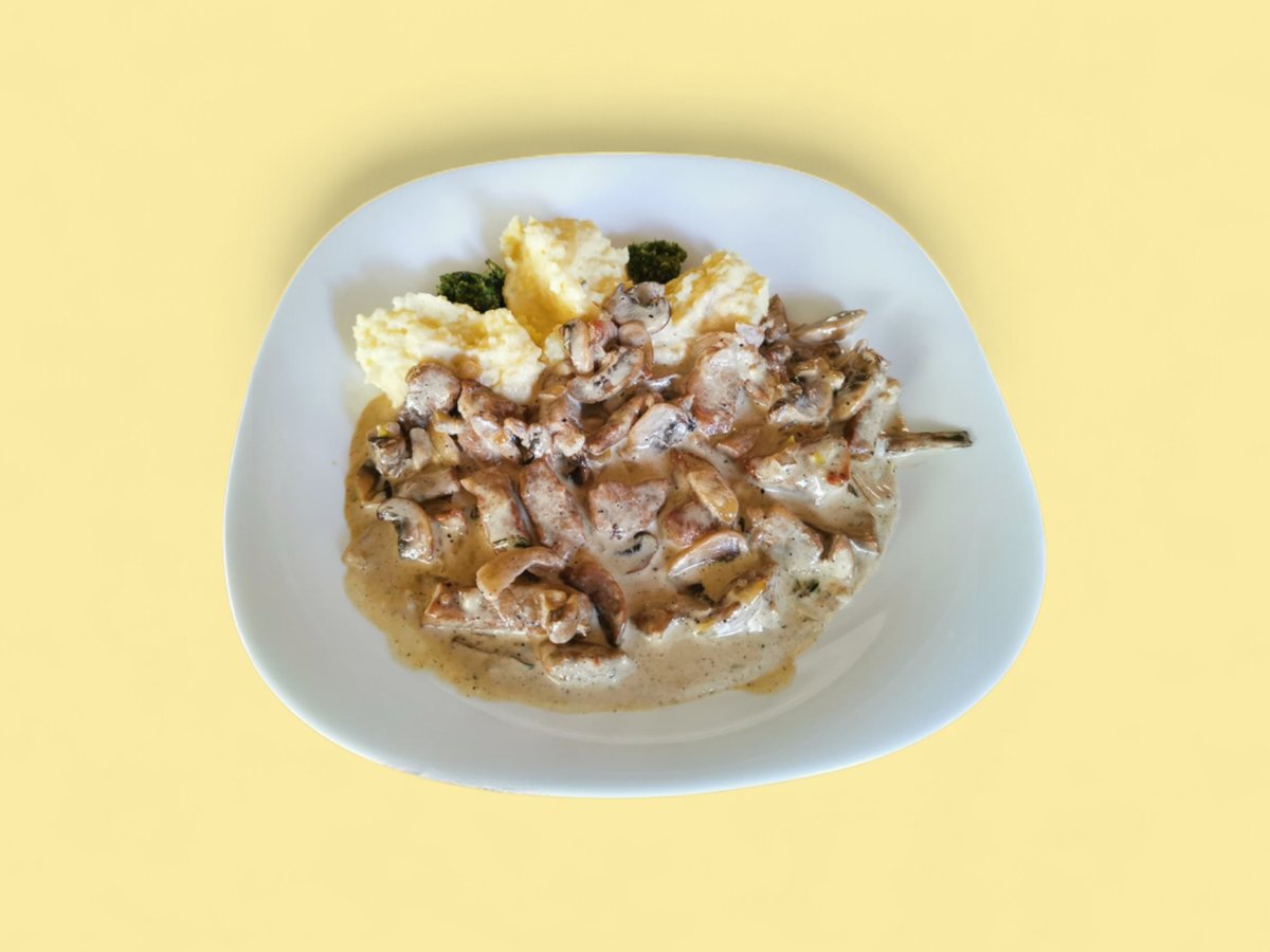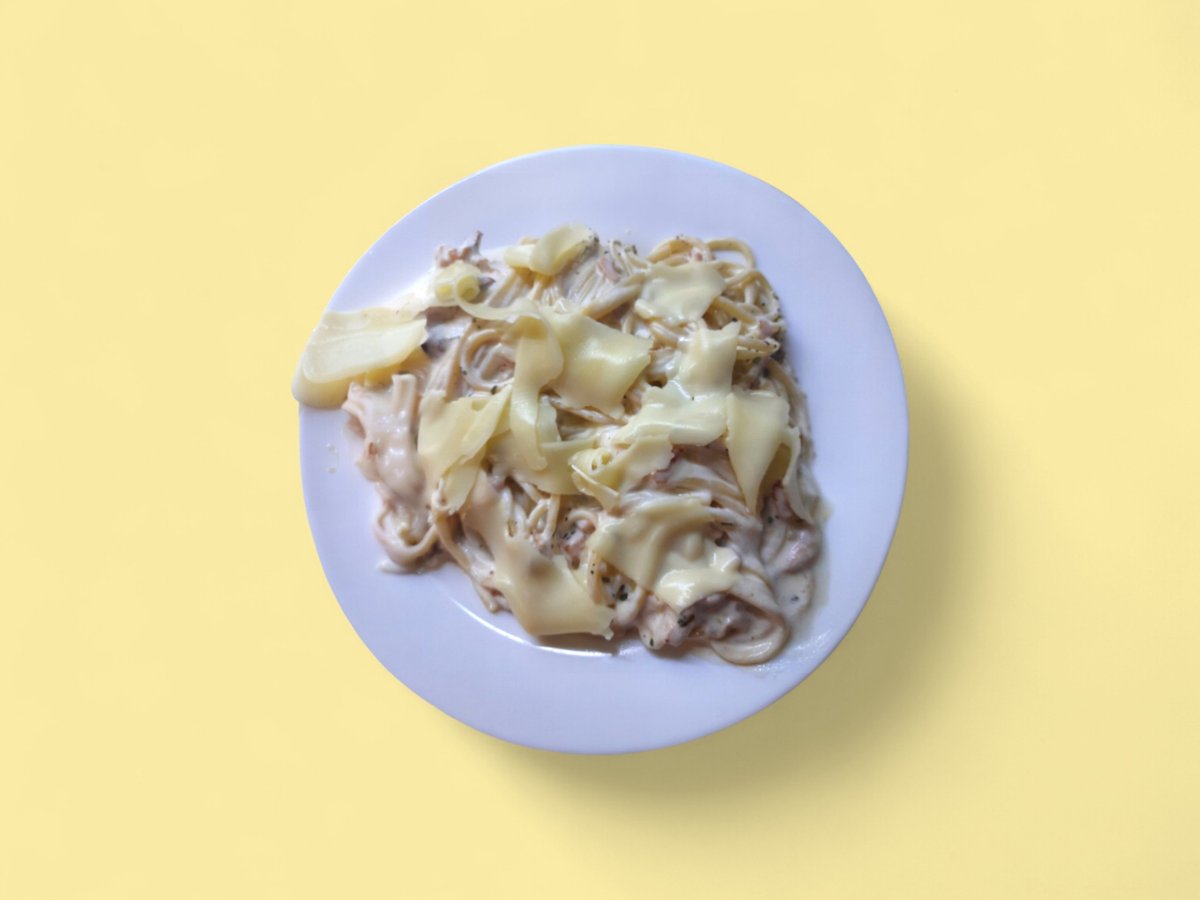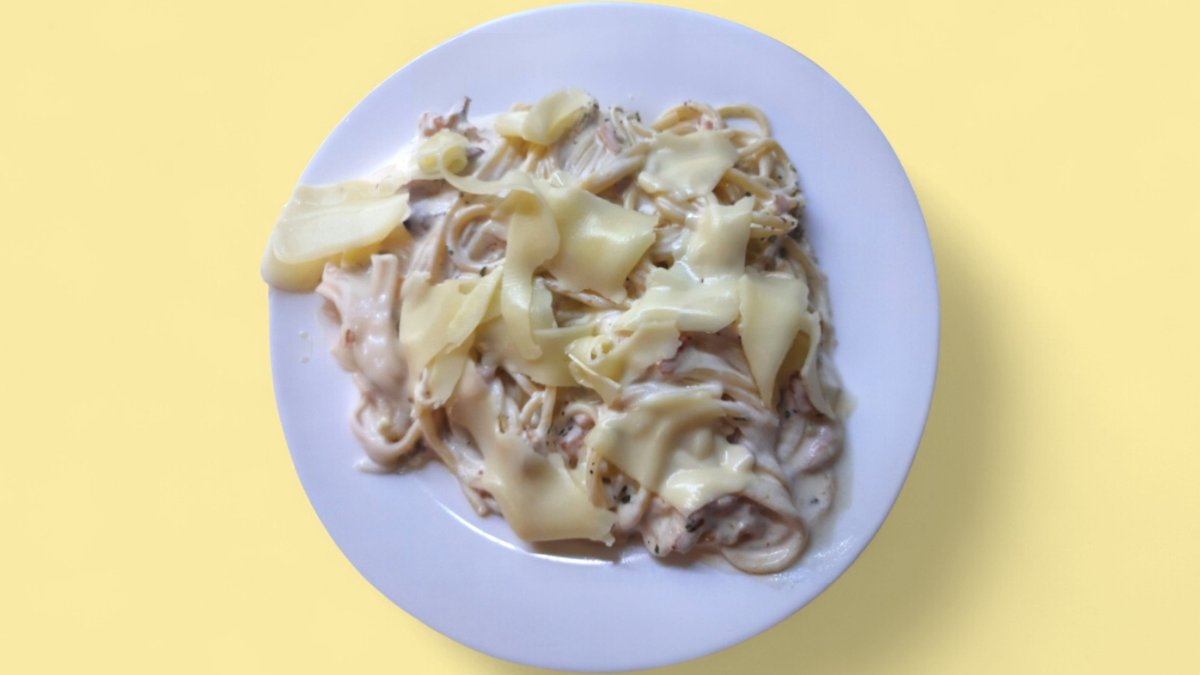 бекон, гъби, яйце, сметана, кашкавал 400г