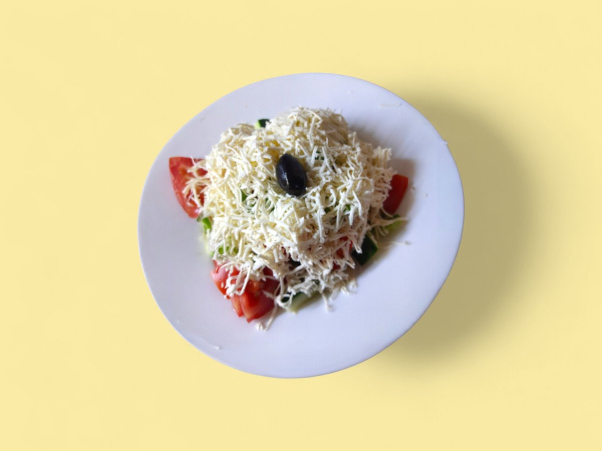 домати, краставици, лук, чушка, сирене 350г
