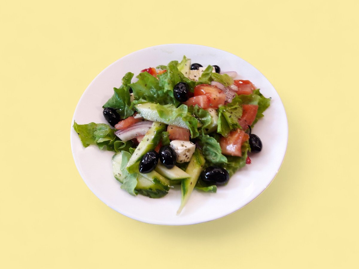 маруля, чери домати, краставица, чушка, лук, сирене, риган, маслини 280г