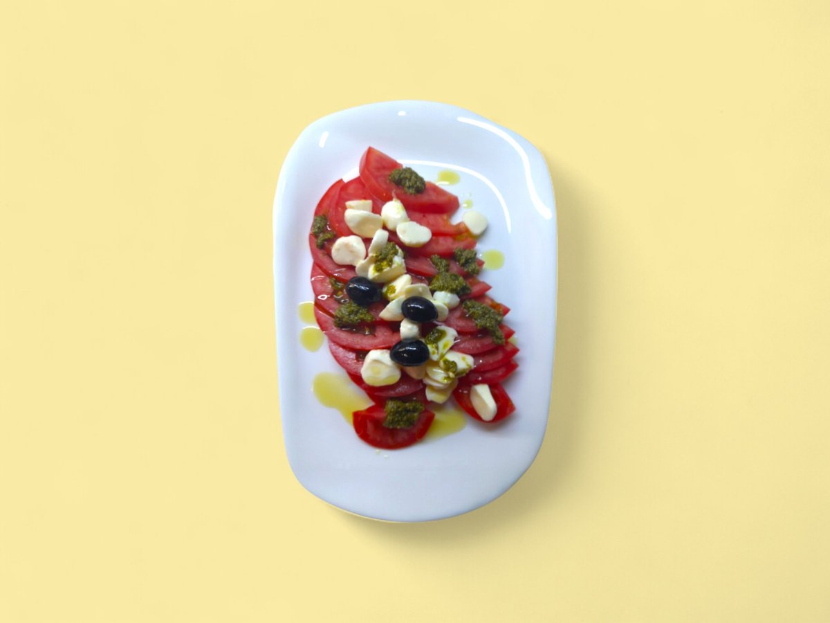 домати, гриловани тиквички, мус сирена 300г