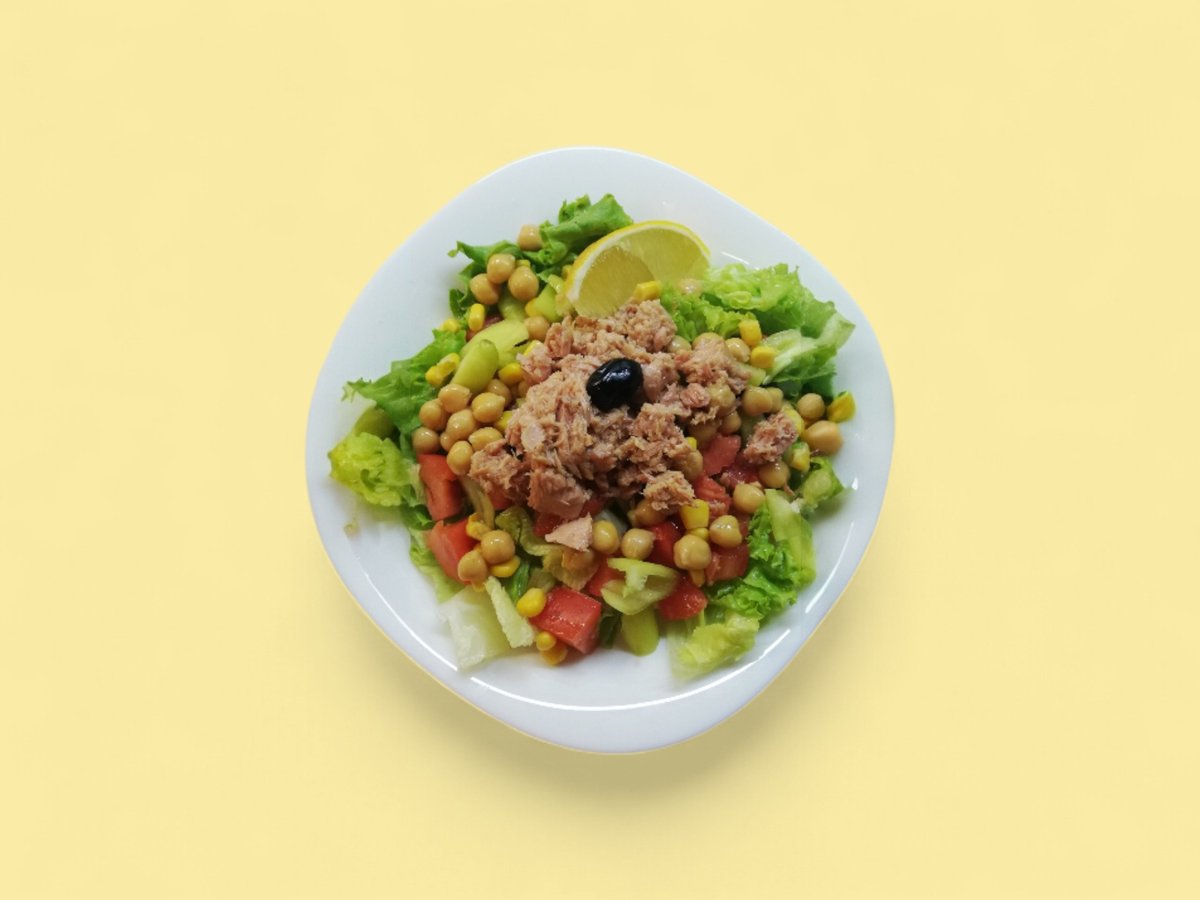 маруля, домати, чушка, царевица, нахут, риба тон 350г