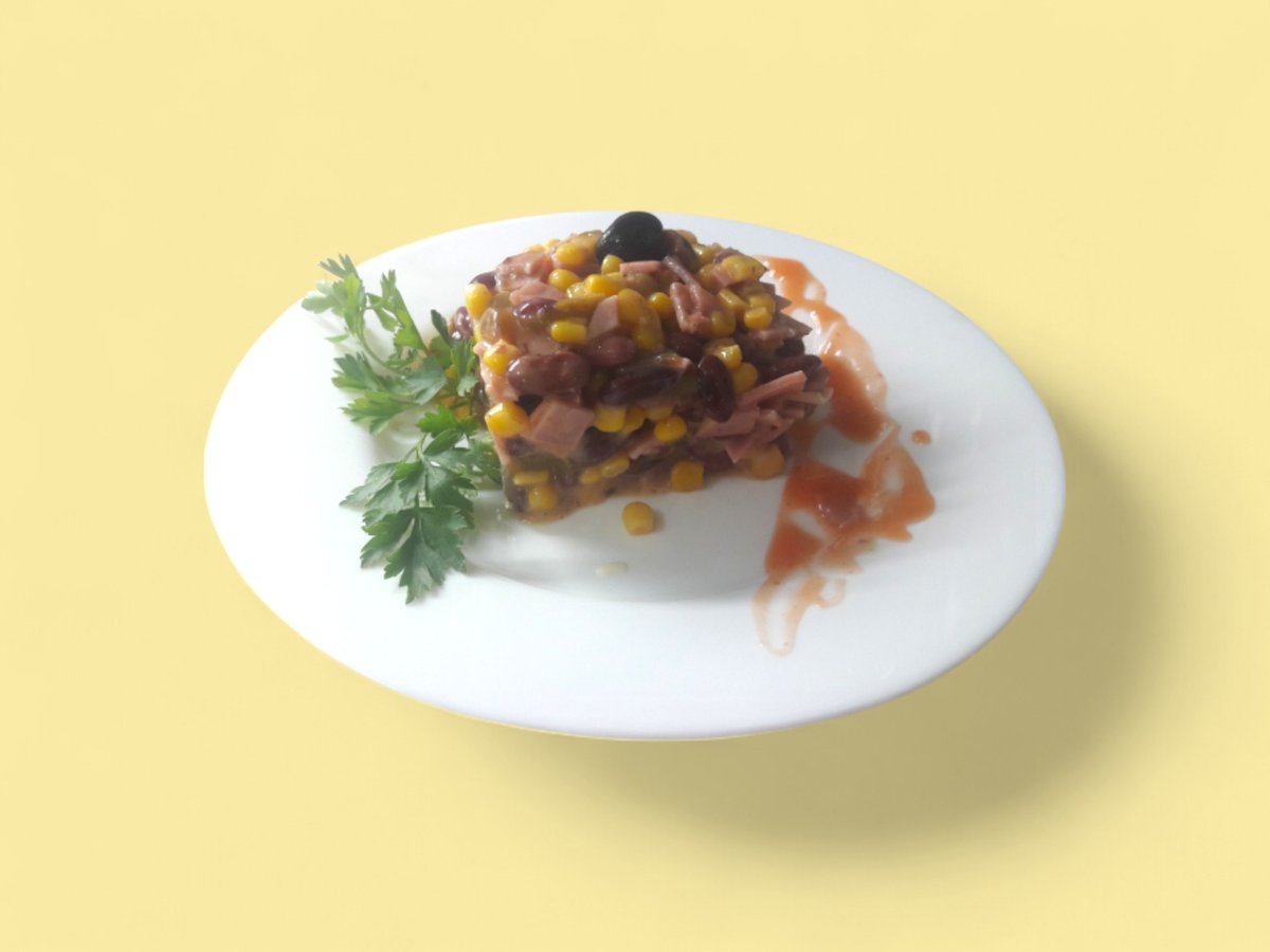 царевица, червен боб, печена чушка, пилешка шунка, чили сос 350г