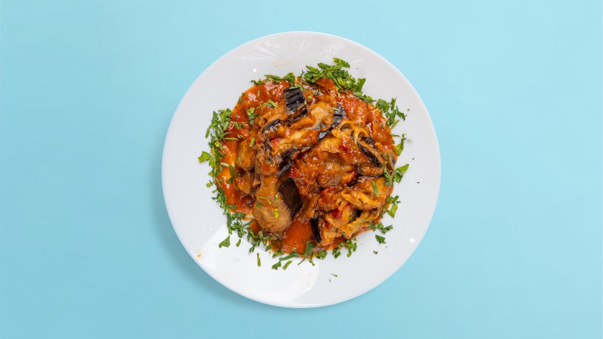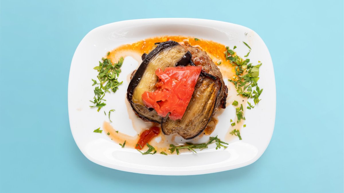 патладжан, кайма, лук, кашкавал, домати / 400 гр