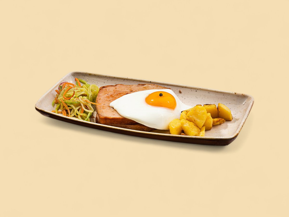 телешко мляно месо, течен чедър, хрупкав лук, сос Йегер, кисели краставички и домашни пържени картофи 300г (в ястието има наличие и на свинско месо)