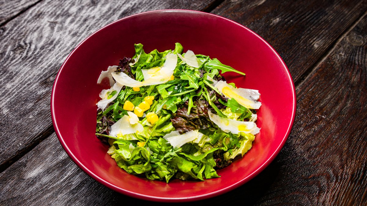 маруля, зеле, домат, краставица, шунка, яйце, царевица, маслини 450г