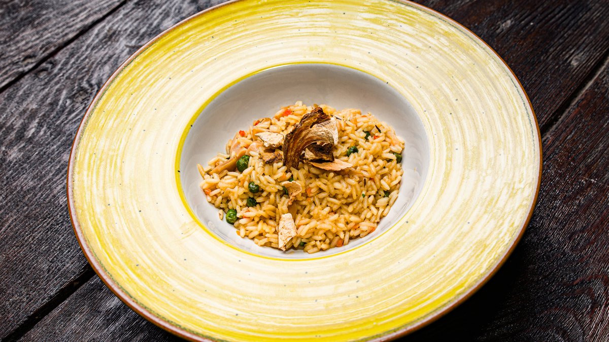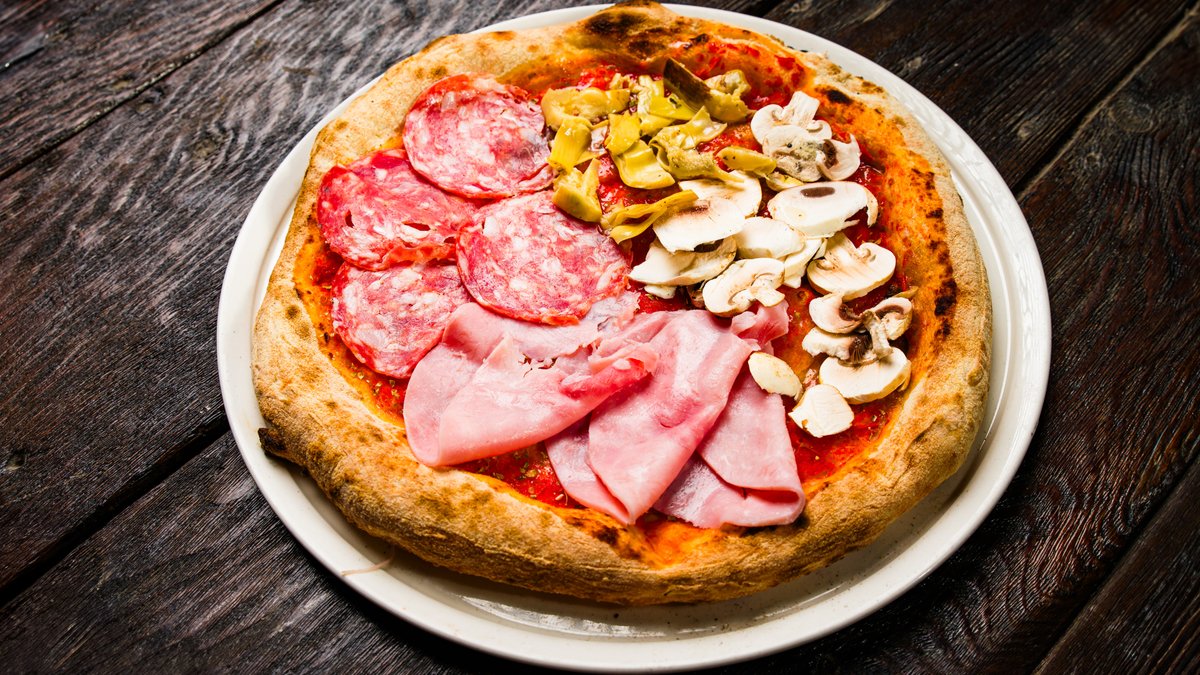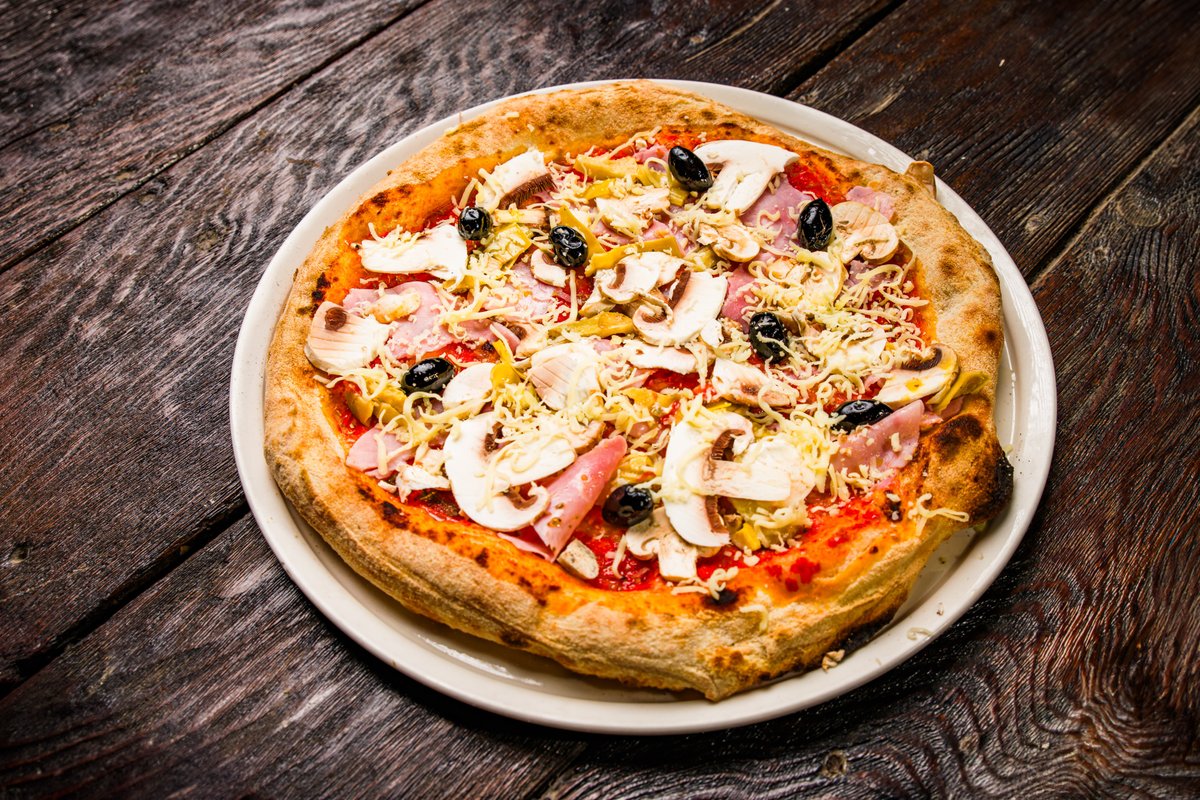 доматен сос, моцарела, шунка, артишок, гъби, маслини 33 см
