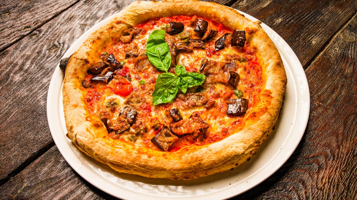 доматен сос, моцарела, патладжан, маслини, каперси, лук 33 см