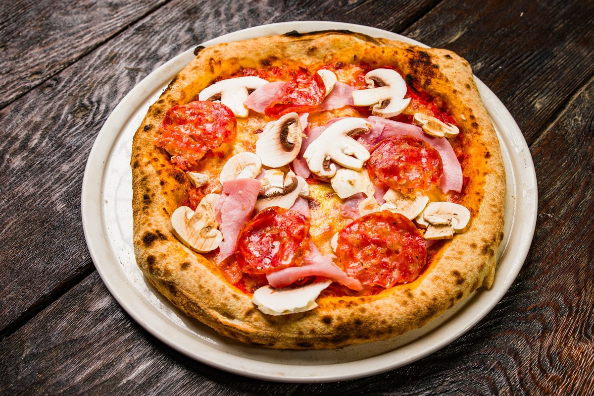 доматен сос, моцарела, шунка, гъби затворена 33 см