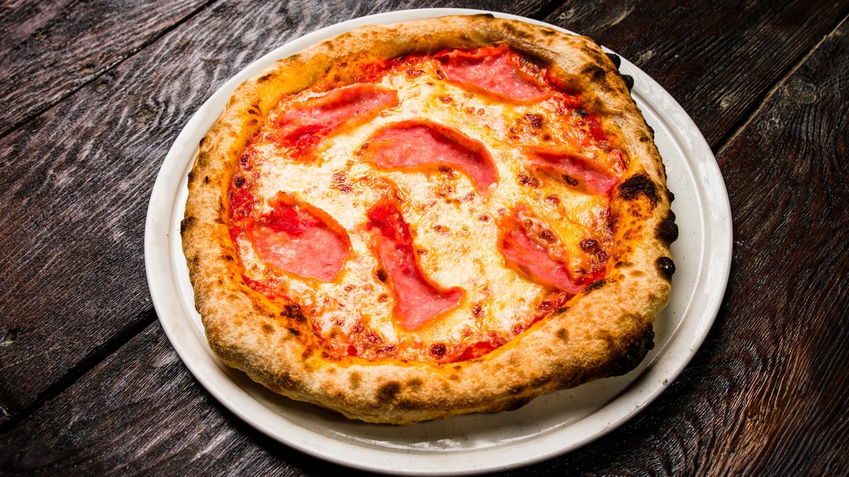 шунка, салам, гъби, доматен сос, моцарела 33 см