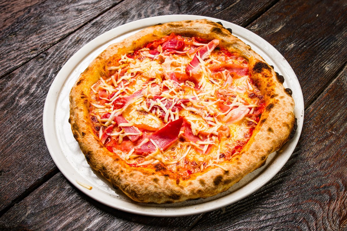 доматен сос, моцарела, бекон, шунка, топено сирене 33 см