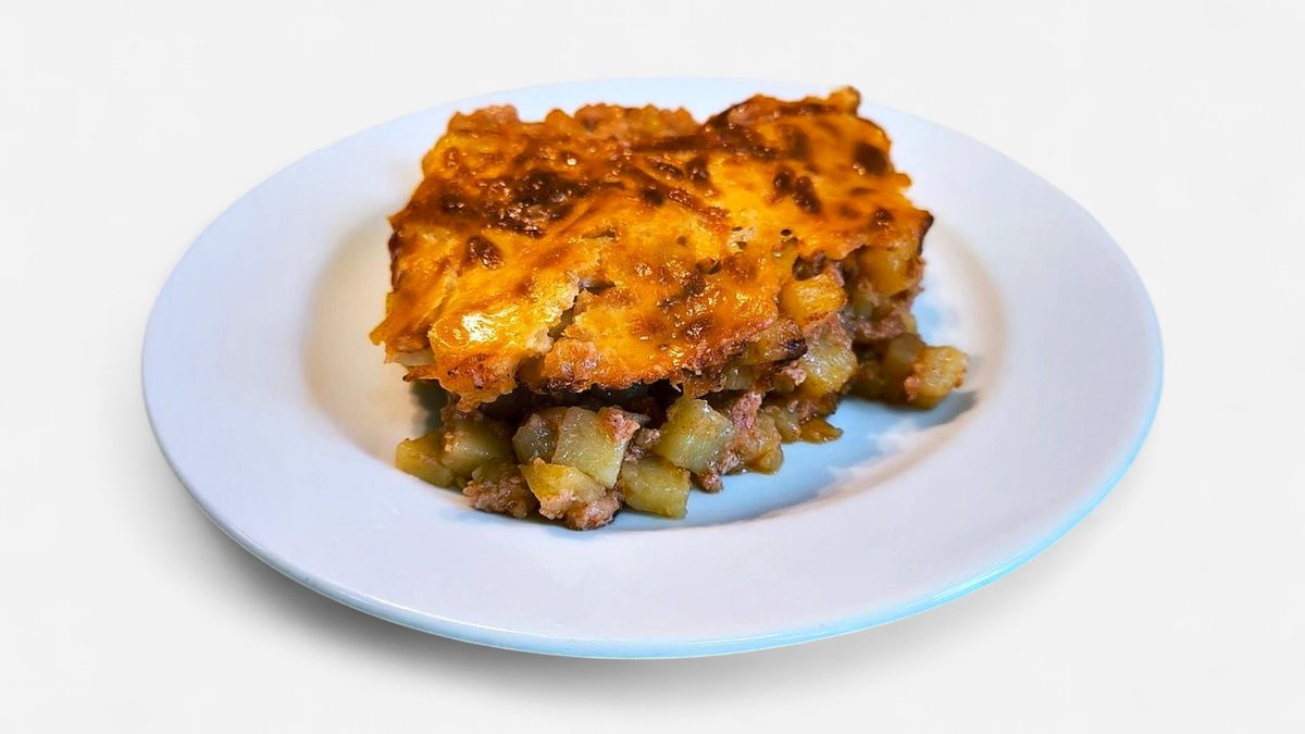 Картофи, свинска кайма, морков, заливка от яйце и кисело мляко, 350гр.