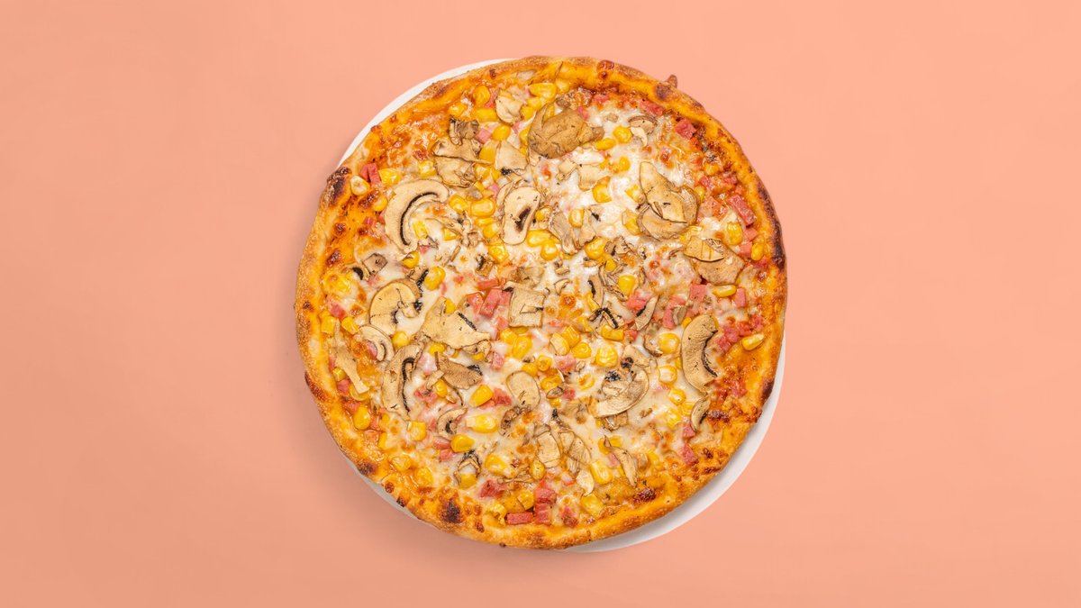 доматен сос, моцарела, шунка, гъби, царевица 450г