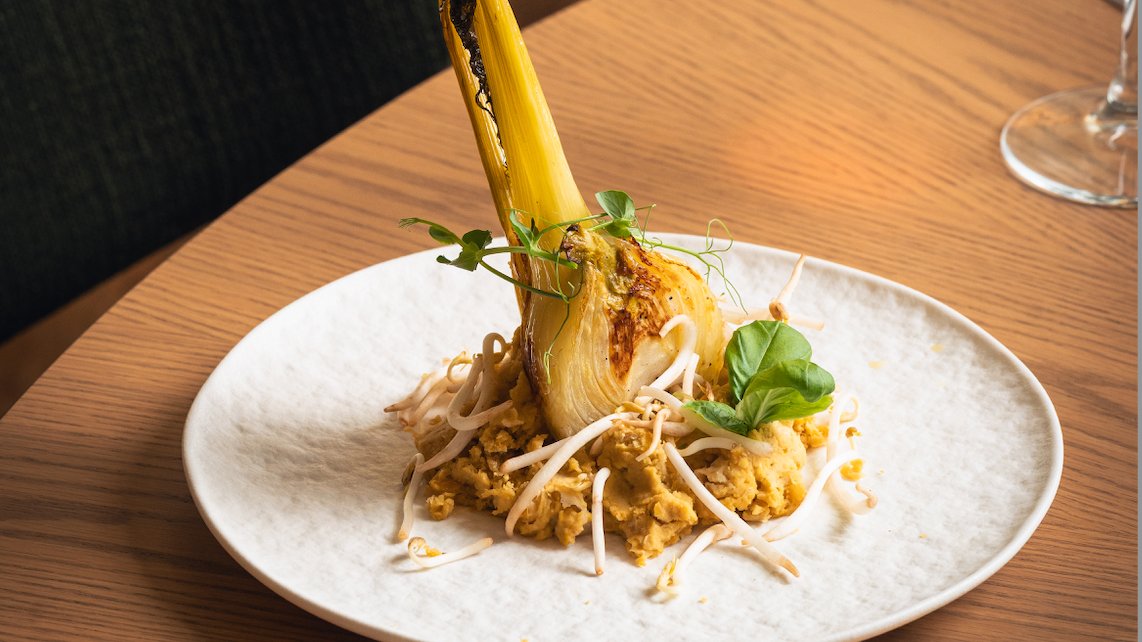 Фенел върху хумус, кълнове и трюфел аромат