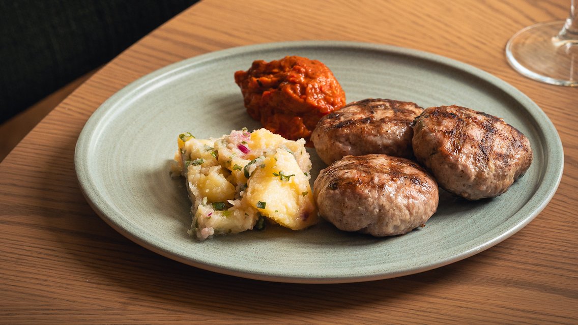 Бабините кюфтенца на скара с лютеничка и картофена салатка